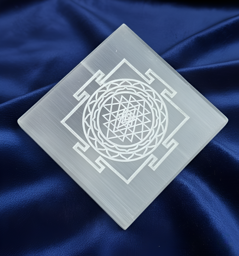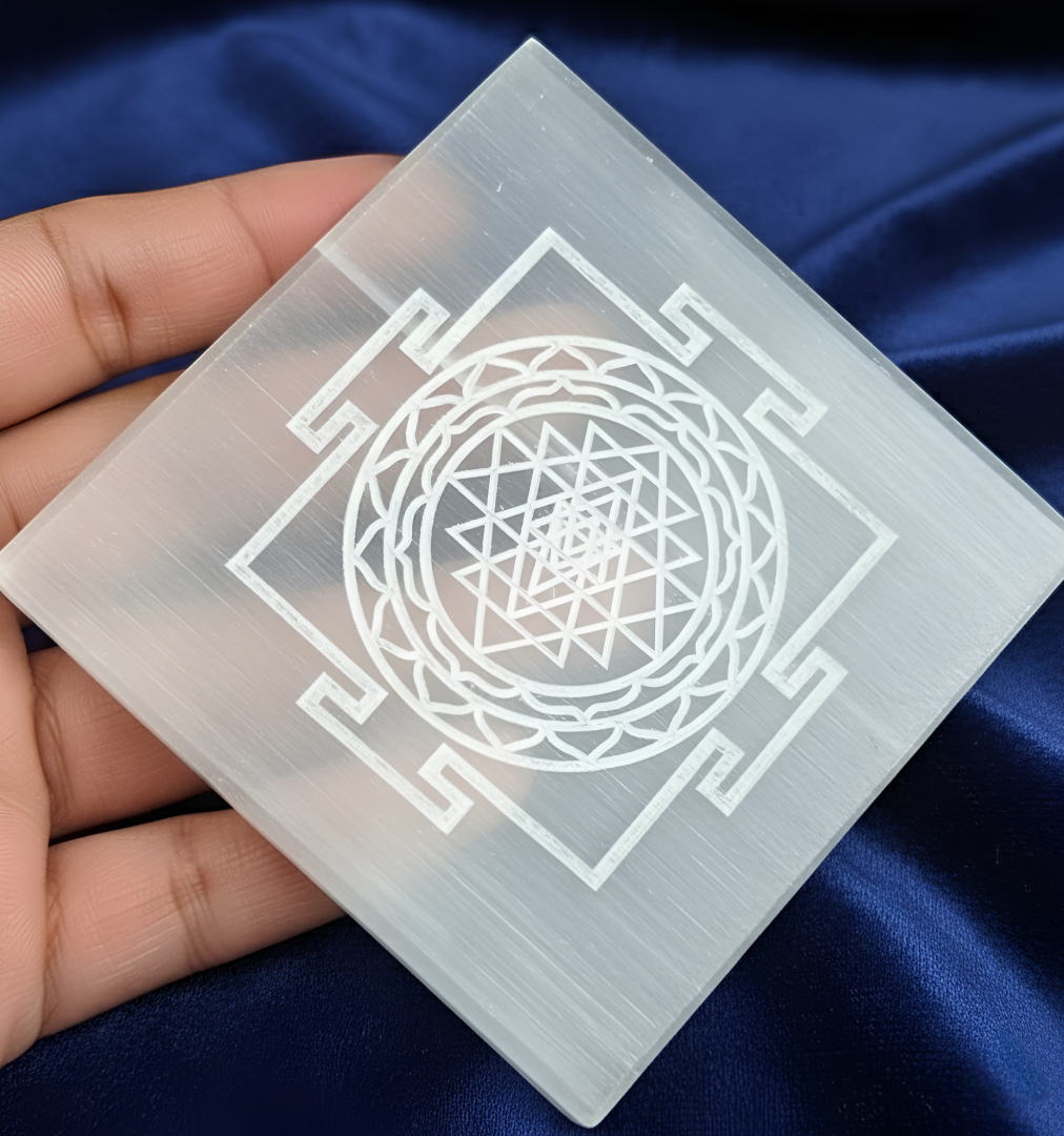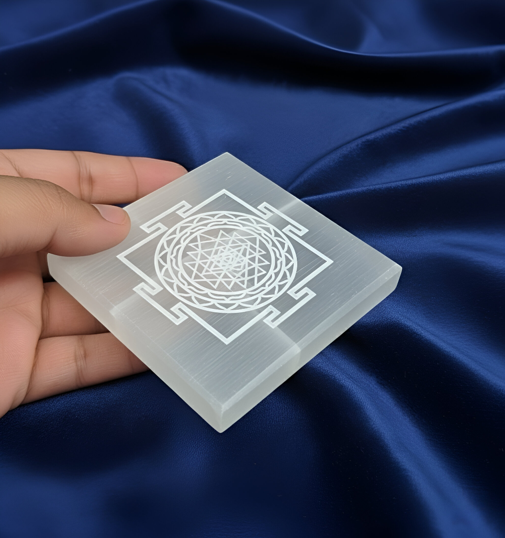 The Selenite Charging Plate with Shree Yantra from Jenil Gems is a powerful energy tool that combines the cleansing power of Selenite with the sacred geometry of the Shree Yantra. Known for its high vibration, Selenite purifies and recharges other crystals, while the Shree Yantra symbol attracts positive energy, abundance, and spiritual growth. Each plate is hand-crafted to promote clarity, peace, and divine connection.